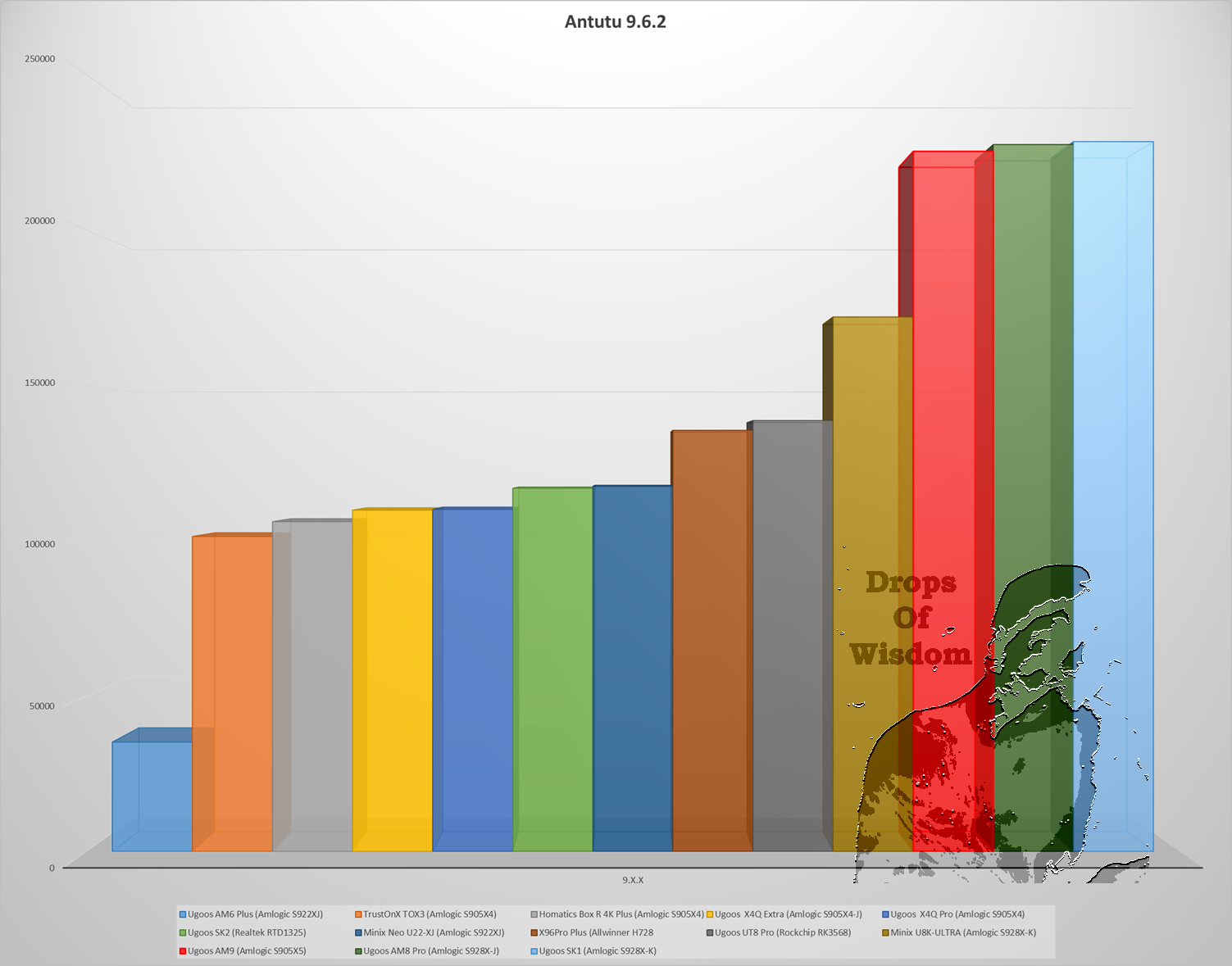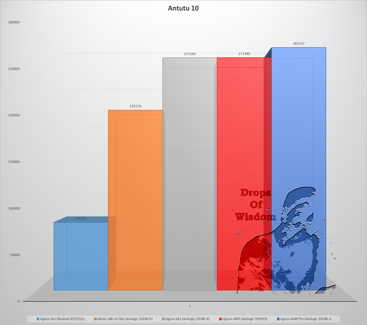 The Antutu benchmark tests single core performance over multi-core as it is a better indication of the performance of one device over others in most situations. Ugoos AM9 takes second place (in Antutu 10) and third place in Antutu 9, very close to the powerful SK1 from Ugoos.