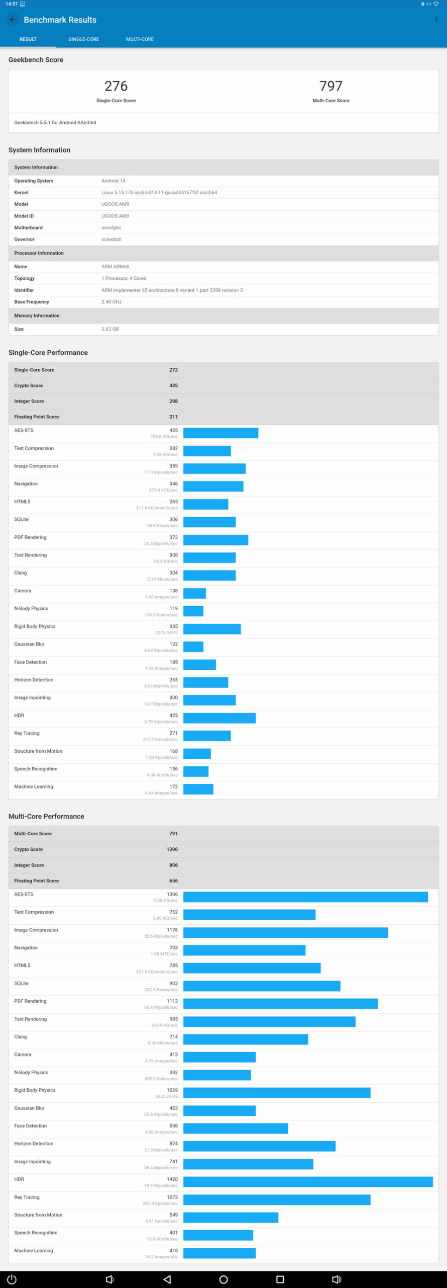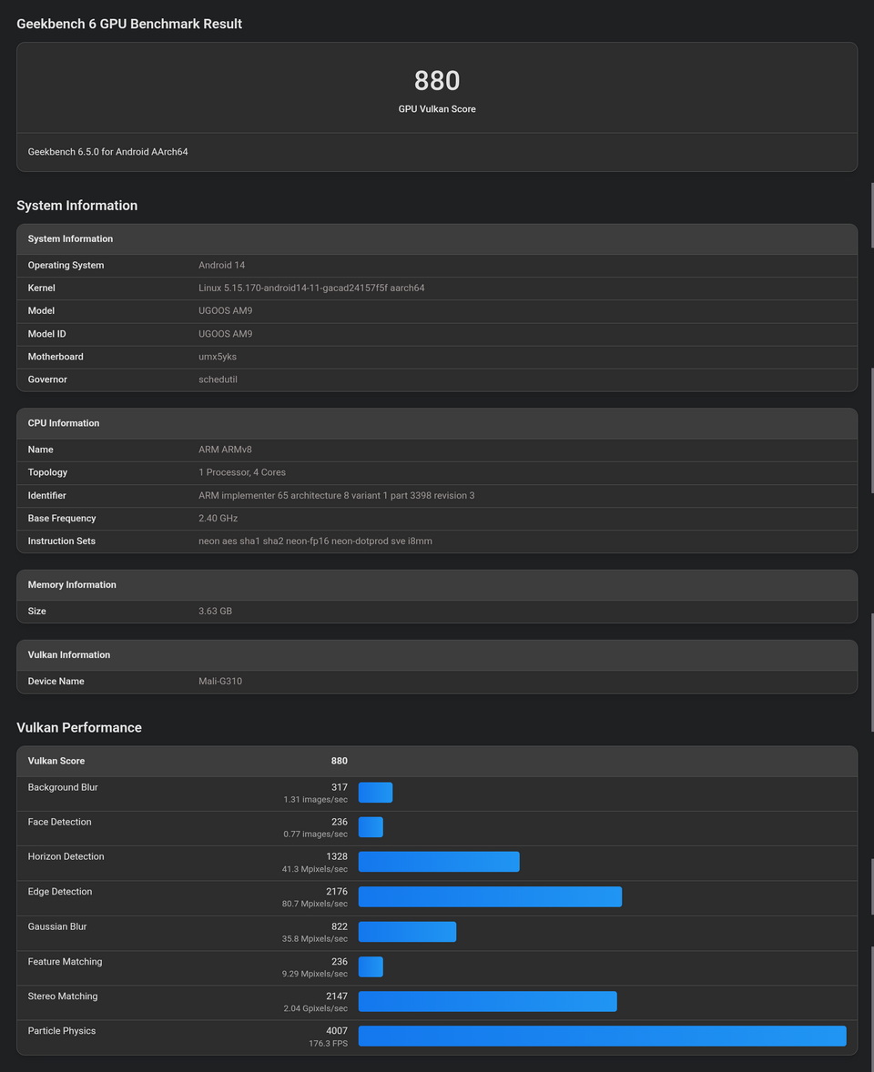 3D Mark benchmark is considered as one of the best ways to test 3d performance on Android (and other platforms). Ugoos AM9 takes 4th place in “Slingshot Extreme”, and first place in “Wild Life”! Quite an achievement.